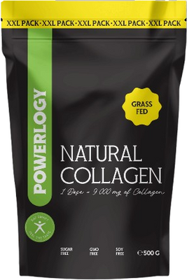 POWERLOGY Natural Collagen 500 g XXL je vylepšená technologie hydrolyzovaného kolagenu z evropského grass-fed hovězího dobytka. Tento produkt neobsahuje žádné přidané příchutě, barviva, sladidla ani konzervanty. Jedna denní dávka (10 g) obsahuje až 9 000 mg čistého kolagenu. Vhodné pro každodenní užívání u aktivních lidí.