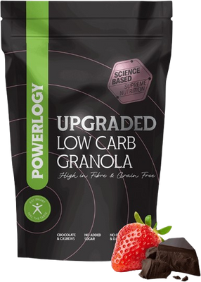 Powerlogy Upgraded Low Carb Granola Chocolate Strawberry 350 gVše o produktuDoplňující informaceHodnocení produktuPrémiová směs vytvořená pro ty, kteří hledají chutnou a výživově hodnotnou náhradu klasických cereálií. Obsahuje kvalitní složky jako kešu ořechy, semínka, tmavou čokoládu a lyofilizované jahody. Formulace je bez přidaného cukru a bez lepku, se zvýšeným obsahem vlákniny pro lepší sytost a stabilní hladinu energie. Tato granola je ideální volbou pro snídani, jako topping na jogurt nebo smoothie, nebo jen tak jako zdravý snack mezi jídly.