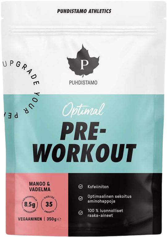 Puhdistamo Pre-Workout Caffeine Free mango-malina 350 gVše o produktuDoplňující informaceHodnocení produktuPuhdistamo Pre Workout je 100% přírodní směs optimalizovaná pro co nejefektivnější povzbuzení před tréninkem. Je zcela bez kofeinu, takže je vhodná i pro chvíle, kdy kofein není vhodný - večer popř. pokud už jsme ho přes den užili dost. Dostatečně vás nabudí před výkonem, ale nebude narušovat váš spánkový režim.