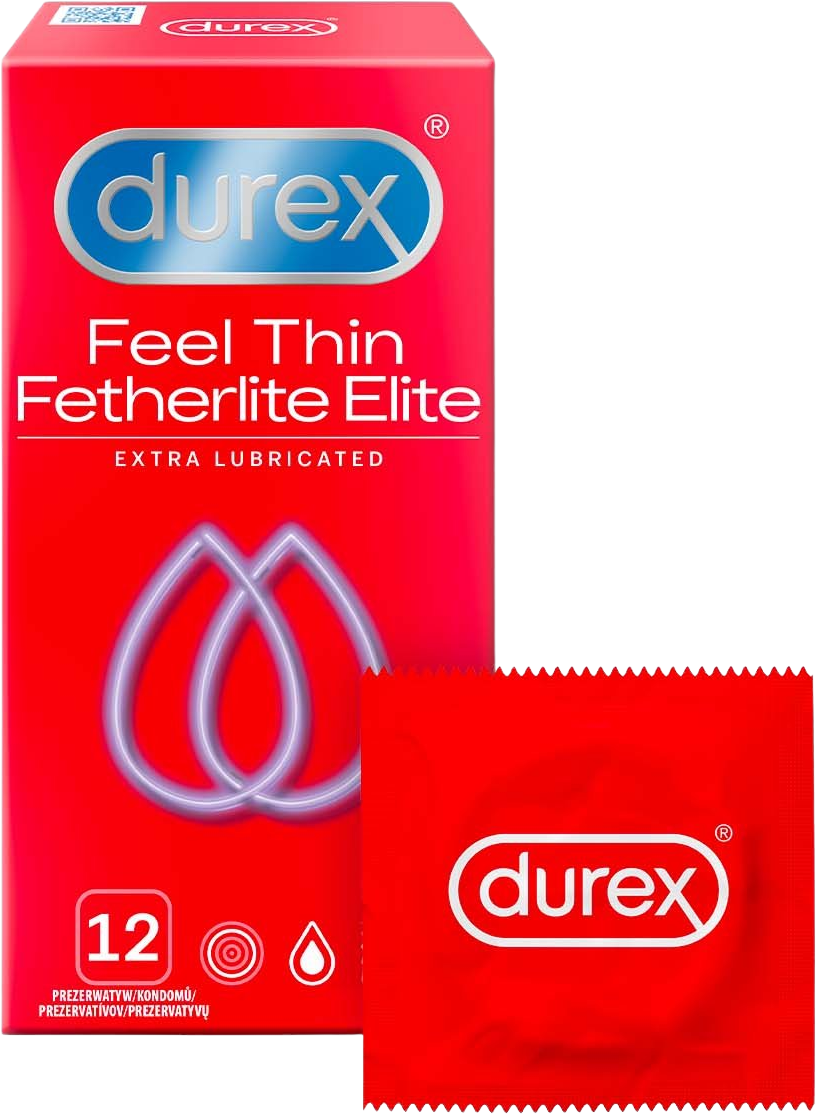 Durex Feel Thin Extra Lubricated jsou zdravotnické prostředky určené k zabránění početí a ochraně před pohlavně přenosnými chorobami. Pečlivě si přečtěte návod na použití uvnitř krabičky, zejména pokud používáte kondomy pro anální nebo orální sex. Kondom je pouze na jedno použití. Žádná antikoncepční metoda vám nemůže poskytnout 100% ochranu proti otěhotnění, HIV či jiným pohlavně přenosným chorobám. Uchovávejte mimo dosah dětí.