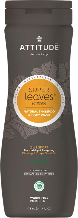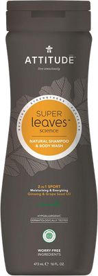 Přírodní, certifikovaný, hypoalergenní a dermatologicky testovaný šampón a tělové mýdlo s výtažky ze zelených listů. Nový koncept Super leaves od ATTITUDE v sobě skrývá koncentrovanou sílu přírody. Přináší skutečně čistou a zdravou pokožku a vlasy - odstraní špínu, toxiny, regeneruje, ozdravuje - bez chemie. Praktická kombinace pro muže - lze použít jako šampon a/nebo sprchový gel. Více informací