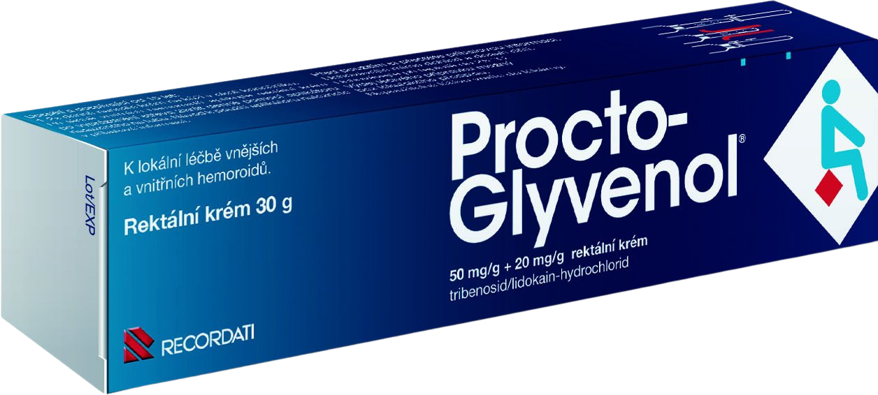 Procto-Glyvenol® se používá pro místní léčbu hemoroidů. První léčivá látka, tribenosid působí místně na příčiny zánětu. Druhá léčivá látka, lidokain je místní anestetikum, které poskytuje okamžitou úlevu od svědění, píchání a bolesti. Více informací