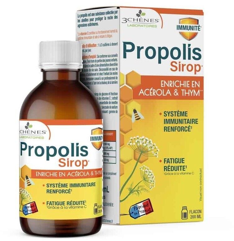 Propolis Les 3 Chênes Propolisový sirup s tymiánem 200mlVše o produktuDoplňující informaceHodnocení produktuPropolisový sirup je moderní přírodní volbou pro děti i dospělé, kteří chtějí podpořit komfort krku a dýchacích cest během sezóny nachlazení nebo suchého či vlhkého kašle. Hlavní složka – propolis – se tradičně používá pro péči o sliznice, kde přispívá k jejich ochraně a pocitu úlevy.