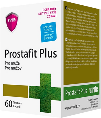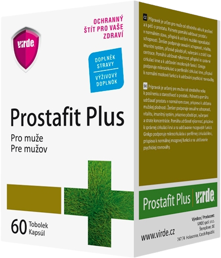 Přípravek Prostafit Plus je určen pro muže od středního věku k posílení a k péči o prostatu. Palmeto pomáhá udržovat prostatu v normálním stavu, přispívá k udržení mužské reprodukční schopnosti. Ženšen podporuje sexuální schopnosti, vitalitu, imunitní systém, příznivě působí při, vyčerpání a ztrátě koncentrace. Pomáhá udržovat výkonnost, přispívá ke správné cirkulaci krve a k udržování mozkových funkcí. Ginkgo podporuje mikrocirkulaci a periferální cirkulaci krve, přispívá k normální mozkové funkci a k udržování psychické rovnováhy.
