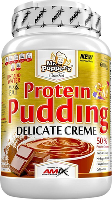 Amix Mr. Popper's Protein Pudding Creme, Dvojitá čokoláda, 600 gVše o produktuDoplňující informaceHodnocení produktuSypká směs na přípravu proteinového pudinkového krému o minimálním obsahu 25 g bílkovin v jedné porci. Je vhodný jako svačinka pro zvýšení vašeho denního příjmu bílkovin. Můžete jej konzumovat během celého dne. Velmi rychlá a snadná příprava buď za studena nebo za tepla.