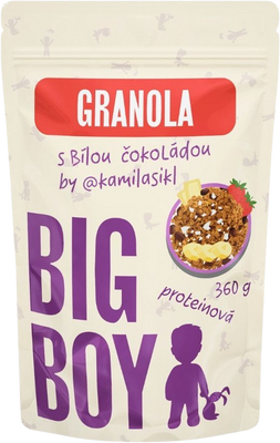 Big Boy Proteinová granola s bílou čokoládou by @kamilasikl Eko varianta 360 gVše o produktuDoplňující informaceHodnocení produktuBig Boy se spojili s influencerkou Kamilou Šikl a namíchali křupavé a voňavé granoly plné čokolády, ořechů a lyo ovoce. Vyber si granolu podle své chuti a krásné ráno může začít. Okamžitá závislost zaručena!