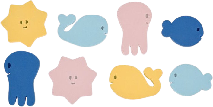 - 8ks pěnových puzzle, které plavou na vodě a drží na stěnách vany či sprchového koutu