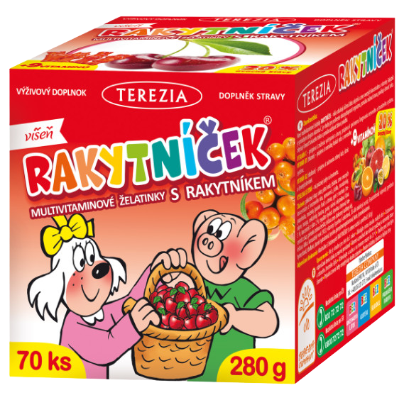 Recenze produktu: Terezia RAKYTNÍČEK multivitaminové želatinky s rakytníkem - příchuť VIŠEŇ 70 ks