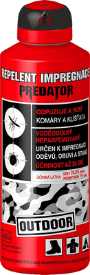 - Repelent PREDATOR OUTDOOR IMPREGNACE spray odpuzuje, paralyzuje a hubí komáry, klíšťata, mouchy, muchničky, ovády, tiplíky a další hmyz