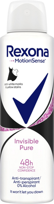 Rexona Invisible Pure Antiperspirant sprej 150 mlVše o produktuDoplňující informaceHodnocení produktuDeodorant Vám zaručí 48hodinovou ochranu proti potu a navíc nezanechává bílé skvrny na oblečení. Kdekoliv jsi, cokoliv během dne děláš, antiperspirant Rexona Invisible Pure bude vždy s tebou a pomůže ti zůstat sebevědomou. Obsahuje také inovativní patentovanou technologii MotionsenseTM založenou na přítomnosti mikrokapslí, jež obsahují vůni a díky tření při pohybu postupně praskají. Dochází tak k pozvolnému uvolňování parfemace podle fyzické aktivity. Platí zde úměra, že čím více se člověk pohybuje, tím intenzivněji antiperspirant voní. Rexona antiperspirant sprej Invisible Pure kromě účinné ochrany nabízí i jiskřivou ovocnou vůni jablek a hrušek. Rexona. Nezradí tě!