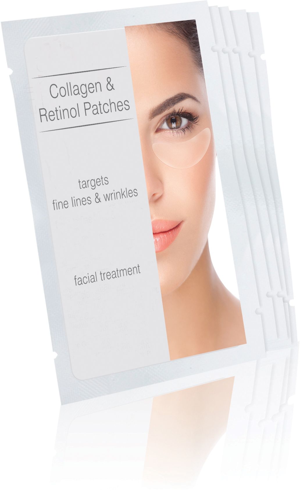 - Kolagenovo-retinolové gelové náplasti obsahují kladně nabitý kolagen a retinol jako činitele proti vráskám a projevům věku