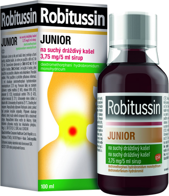 Robitussin Junior na suchý dráždivý kašel 3,75 mg/5 ml, sirup, obsahuje dextromethorphani hydrobromidum monohydricum.