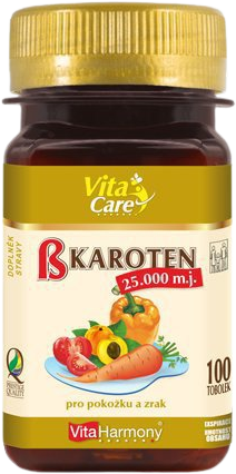 Mimořádné promo balení 1+1 (100+100 tobolek) obsahuje 2 kusy přípravku Beta karoten 10.000 m.j. (6 mg) - 100 tob. za cenu jednoho kusu tohoto přípravku. Karoteny jsou látky ze skupiny karotenoidních barviv, z nichž nejrozšířenější a nejznámější je beta karoten.