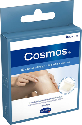Náplast s gelovým polštářkem, která zabraňuje vzniku strupu. Náplast Cosmos Na odřeniny urychluje a zkracuje dobu hojení rány díky přítomnosti hydrokoloidního polštářku. Vytvořené vlhké prostředí zmírňuje bolest, brání přilepení náplasti k ráně a vzniku strupu.