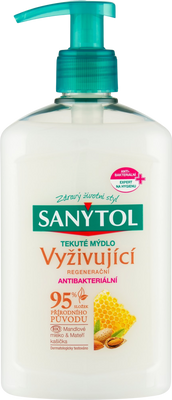 Dezinfekční vyživující a obnovující tekuté mýdlo SANYTOL má hypoalergenní složení, které je obohaceno o přírodními výtažky z mandlového mléka a mateří kašičky. Více informací