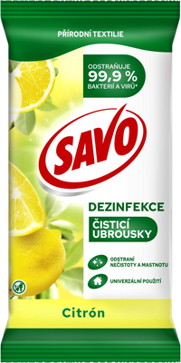Savo čisticí ubrousky účinně desinfikují a čistí jakékoliv omyvatelné povrchy. Velmi pohodlně se používají nejen v domácnosti, ale také na cestách. Odstraňují nečistoty, mastnotu, 99,9% bakterií, virů* a alergenů. Bonusem je svěží citrónová vůně. Více informací