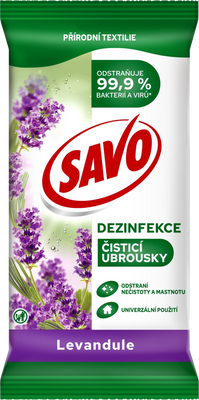Savo čisticí ubrousky účinně desinfikují a čistí jakékoliv omyvatelné povrchy. Velmi pohodlně se používají nejen v domácnosti, ale také na cestách. Odstraňují nečistoty, mastnotu, 99,9% bakterií, virů a alergenů. Bonusem je příjemná levandulová vůně. Více informací