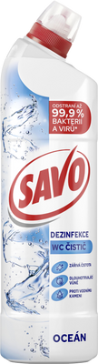 Savo WC čistič Oceán je tekutý dezinfekční gel s vůní oceánu, který se postará o zářivý lesk a čistotu vaší toalety. Přípravek likviduje až 99,9 % bakterií a virů, odstraňuje zašlou špínu a vodní kámen. Příjemná vůně oceánu zajistí dlouhotrvající svěžest vaší toalety.