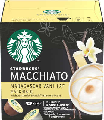 Kávové kapsle STARBUCKS® by NESCAFÉ® Dolce Gusto®, jemné a krémové latte macchiato s madagaskarskou vanilkou. Více informací