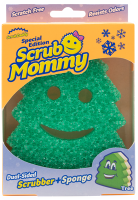 Houbička Scrub Mommy®, má stejný ergonomický design jako houbička Scrub Daddy, ale v oboustranném provedení. Jedna strana z materiálu FlexTexture, který mění svou tvrdost. V teplé vodě je houbička měkká a vysoce savá.