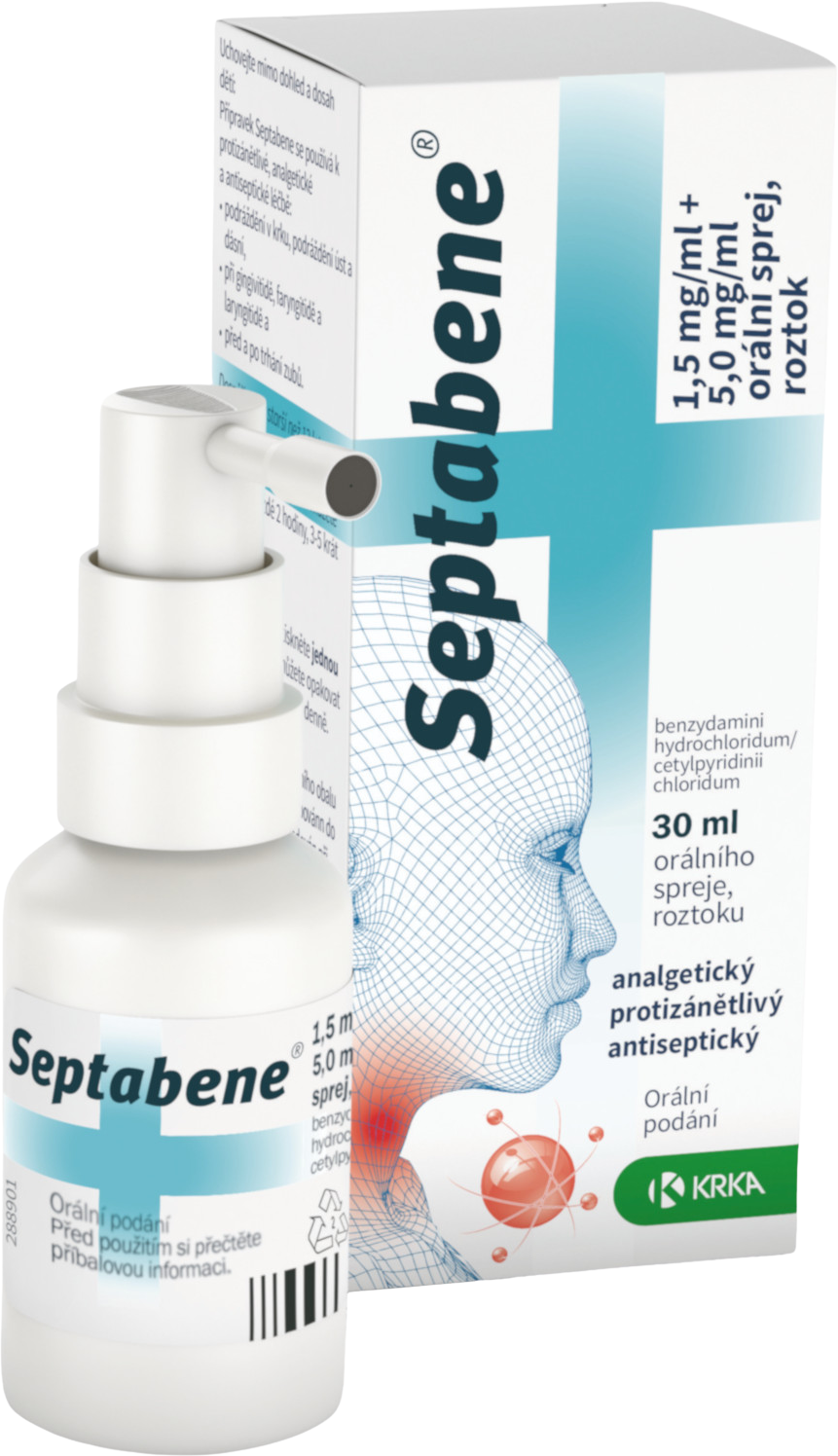 pastilky a Septabene 1,5 mg/ml + 5,0 mg/ml orální sprej, roztok jsou léky