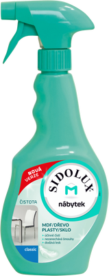 S touto vlajkovou lodí značky Sidolux bude Váš nábytek vždy zářit čistotou. Speciální aktivní pěna odstraňuje z povrchů prach a zabraňuje jeho dalšímu usazování. Vyzkoušejte tento produkt jednou a už nebudete chtít na ošetření nábytku používat jiný. Tajemství produktu spočívá ve speciální aktivní pěně. Díky ní odstraňuje prostředek veškeré drobné částice z povrchu nábytku a nezanechává šmouhy. Kromě toho vytváří Sidolux M na vyčištěném povrchu aktivní štít, který chrání nábytek před opětovným usazováním prachu. Navíc má prostředek příjemnou vůni, kterou ucítíte ještě dlouho po skončení úklidu.