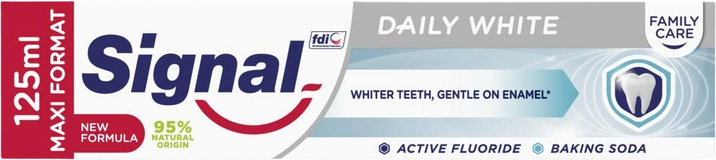 - Zubní pasta Signal Family Care Daily White s obsahem jedlé sody citlivě pomáhá obnovit přirozenou bělost zubů
