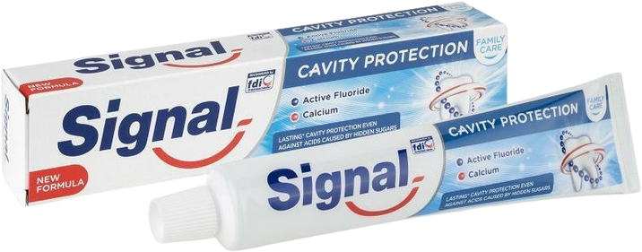 Zubní pasta Signal Cavity Protection pomáhá bojovat s prvními neznatelnými známkami zubního kazu a chránit vaše zuby i mezi jednotlivými čištěními. Více informací