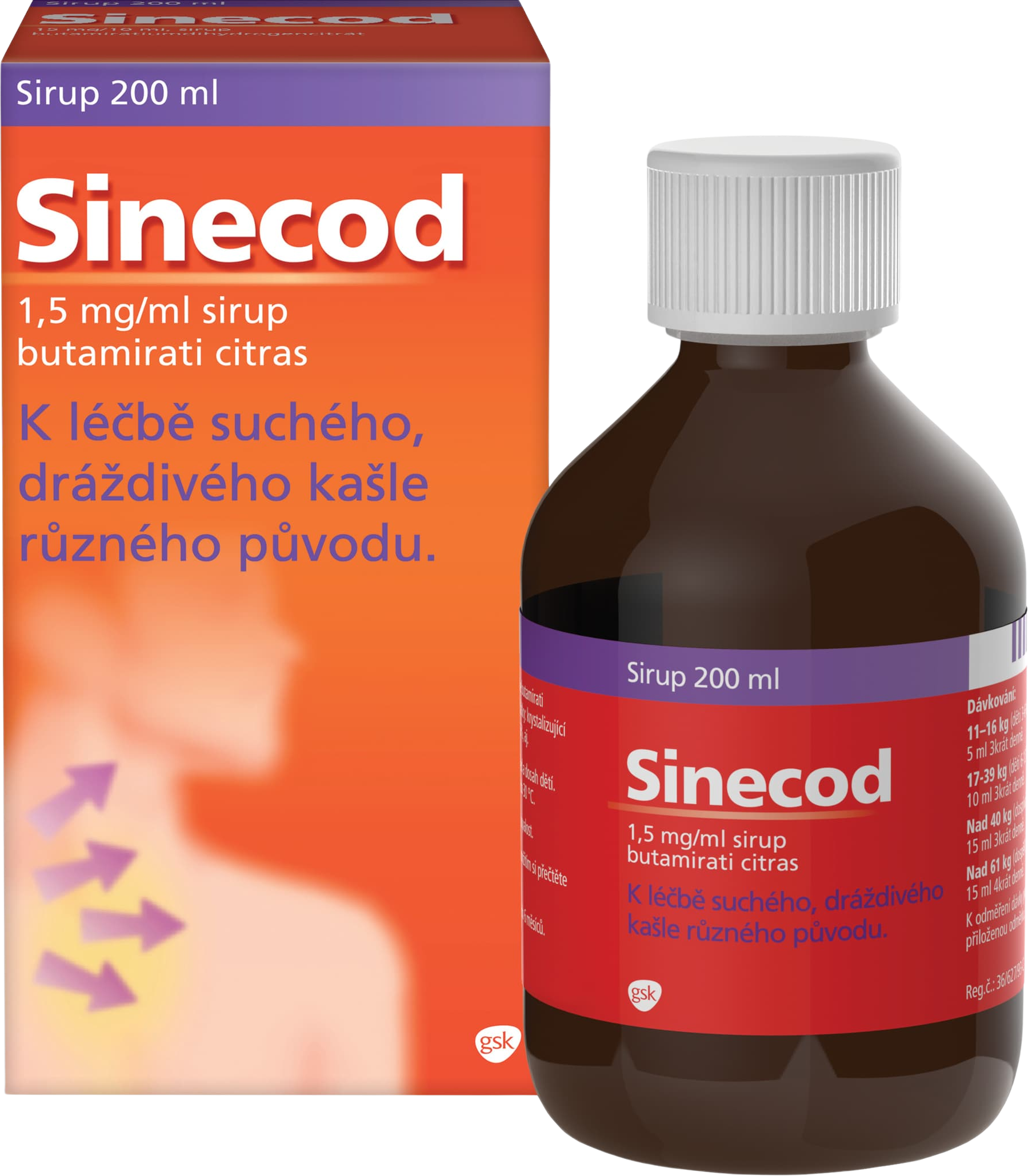 Bez porady s lékařem se přípravek užívá ke krátkodobé léčbě akutního kašle, např. při akutních infekcích horních a dolních cest dýchacích, průdušnice a průdušek. Sinecod 0,15 % sirup mohou užívat dospělí, dospívající a děti od 3 let.