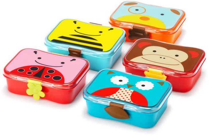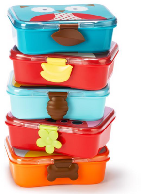 Krásná krabička na svačinu v designu Zoo kolekce se skládá ze 2 dílů: krabička na svačinu s nepropustným víčkem a menší krabička na piškoty.