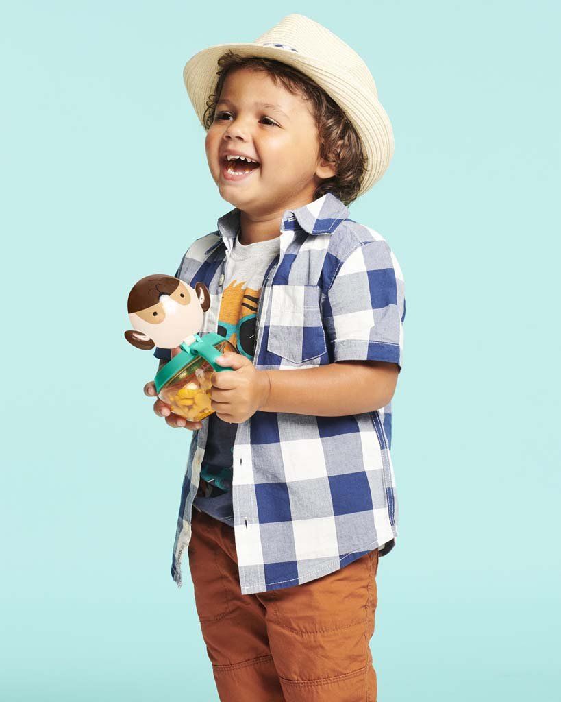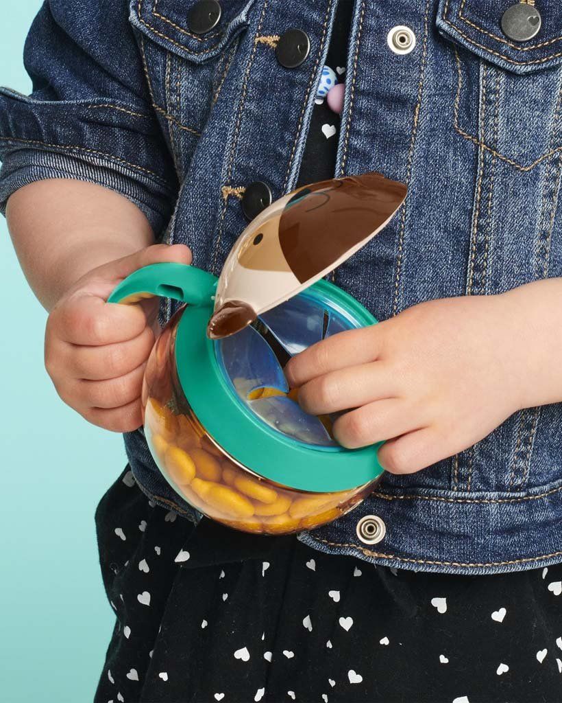Skip Hop Zoo Nádoba na sušenky Mopslík 12m+ 222 mlVše o produktuDoplňující informaceHodnocení produktuChytrý nápad na cesty. Kalíšek má víčko, které po otevření drží, před vysypáním obsahu jej chrání pružné lamely, které pustí dětskou ručičku dovnitř, ale nepustí svačinku ven. Kalíšek je průhledný, aby se mohl zavčasu doplnit. Na boku je praktické ouško v dětském rozměru, pomocí kterého lze kalíšek připevnit i na kočárek či tašku.