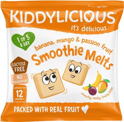 Kiddylicious Ovocné polštářky z banánu, manga a marakuji 6 gVše o produktuDoplňující informaceHodnocení produktuJsou perfektní svačinkou na cesty. Obsahují pouze přirozeně se vyskytující cukry.