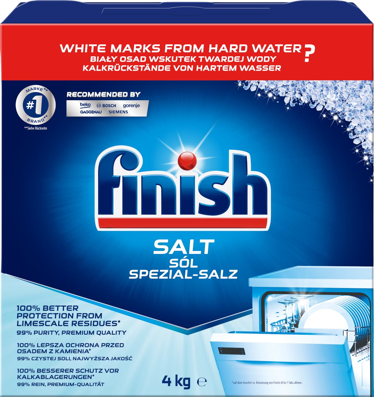 Soli do myčky obsahují speciální změkčovače vody, které se při mytí nádobí ve vodě rozpouštějí a upravují tvrdost vody a zároveň chrání vaši myčku před nejrůznějšími usazeninami.