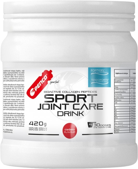 Penco® Sport Joint Care Drink je perfektní kombinace bioaktivních kolagenních peptidů FORTIGEL® aTENDOFORTE ® od německého výrobce společnosti GELITA. Ta na základě svých klinických studií doporučuje 5 g FORTIGEL® + 5 g TENDOFORTE ® denně pro normální klouby, vazy a šlachy.