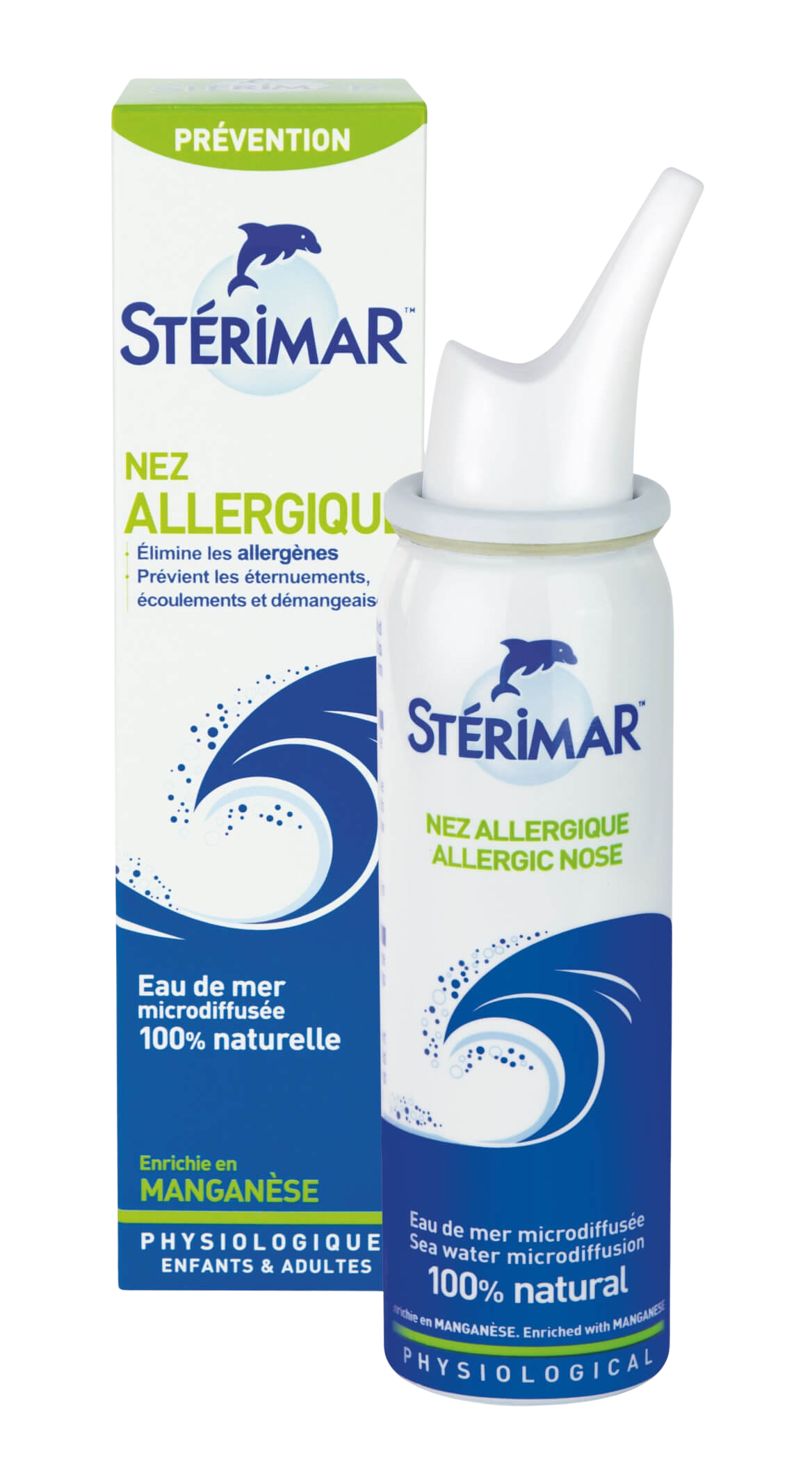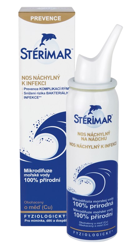 Čistý nos je základem dobrého dýchání. Zdravá nosní sliznice chrání organismus před vstupem infekčních organismů. Nosní sprej Stérimar je obohacen o mořskou vodu, která blahodárně působí na podrážděný nos a oplachuje alergeny. Obsahuje spoustu pro tělo prospěšných minerálů. Kromě jiného můžete sáhnout i po Stérimar Cu s mědí nebo Stérimar Mn (obohacený o mangan).