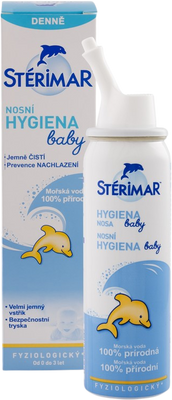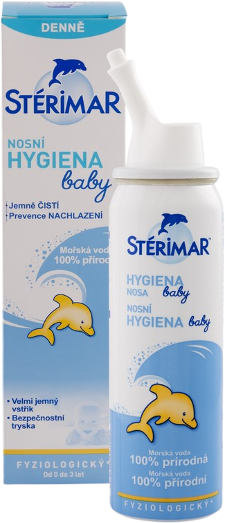 Zdravotnický prostředek. Sprej STÉRIMAR™ BABY Nosní hygiena pro děti od 0 do 3 let. Obsahuje minerály jako hořčík, síru, vápník, draslík, brom a uhlík, dále aminokyseliny a mikroorganismy, které mají antibakteriální a antibiotické účinky na naše tělo. Více informací