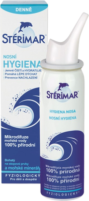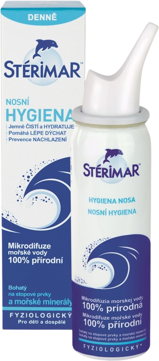 Zdravotnický prostředek. Stérimar sprej nosní hygiena pro již pro děti od narození. Obsahuje minerály jako hořčík, síru, vápník, draslík, brom a uhlík, dále aminokyseliny a mikroorganismy, které mají antibakteriální a antibiotické účinky na naše tělo. Více informací
