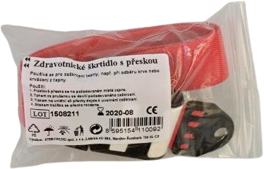 Škrtidlo s přezkou je vhodné při odběrech krve. Výhodou je snadná manipulace, rychlé rozepnutí a uvolnění škrtidla. Více informací