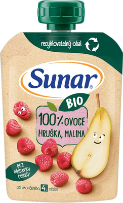 Sunar BIO ovocná kapsička hruška, malina 4m+ 100 gVše o produktuDoplňující informaceHodnocení produktu