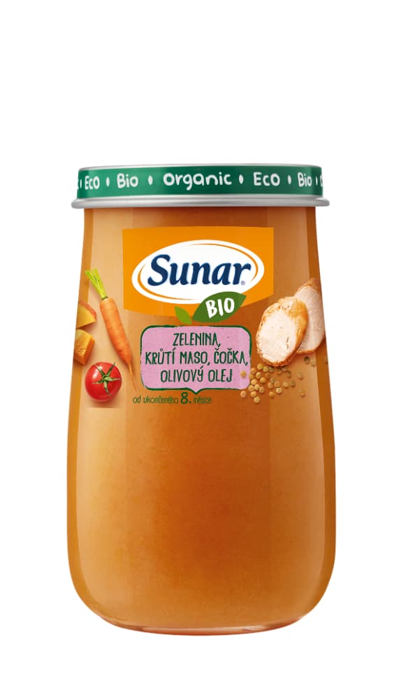 Recenze produktu: Sunar BIO příkrm zelenina, krůtí maso, čočka, olivový olej 8m+ 190 g