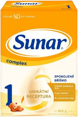 Sunar Complex 1 je počáteční mléčná kojenecká výživa, v prášku. Je určen pouze pro výživu kojenců od narození v období odstavování nebo pokud nemohou být kojeni. Potravina pro zvláštní výživu. Kojení je pro novorozence a kojence nejlepší způsob výživy. Dříve, než se rozhodnete používat náhradní mléčnou výživu, poraďte se s dětským lékařem. Sunar Complex 1 jako náhradu za kojení používejte pouze na radu nezávislých osob kvalifikovaných v lékařství, výživě nebo farmacii, nebo jiných odborníků odpovědných za péči o matku a dítě. Pro zdraví kojenců je důležité správné dodržování návodu k přípravě. Při přípravě používejte pouze přiloženou odměrku. Neměňte poměr prášku a vody.