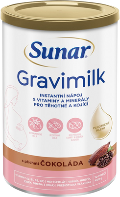 Sunar Gravimilk je instantní mléčný nápoj v prášku obohacený o vitaminy a minerální látky určený pro těhotné a kojící maminky. Obsahuje látky důležité v těhotenství i v době kojení. Má vynikající přirozeně mléčnou chuť díky obsahu plnotučného mléka. Více informací