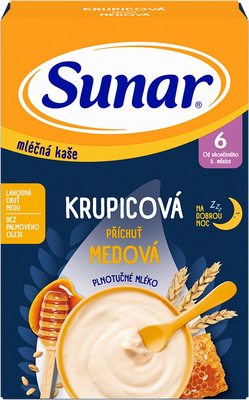 Sunar mléčná krupicová kaše na dobrou noc medová 225 gVše o produktuDoplňující informaceHodnocení produktuVynikající chuť mléčných kašiček je dána jejich složením s vyváženým obsahem mléka, vyšším podílem ovoce a pečlivě vybranými cereáliemi.