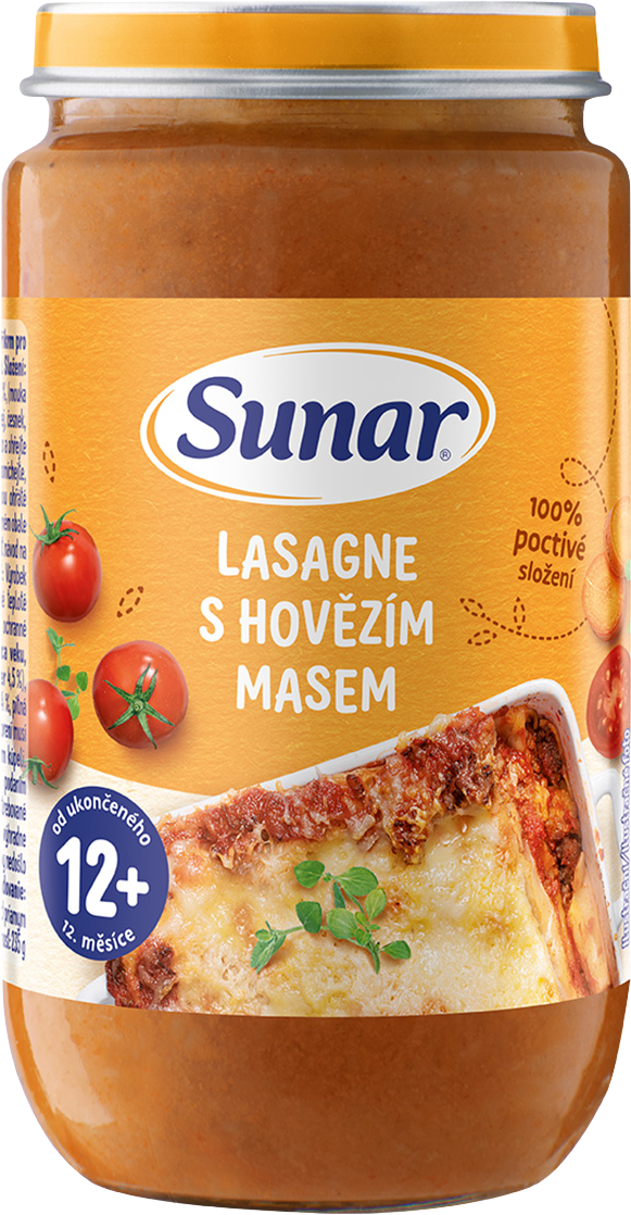 Sunar Příkrm lasagne s hovězím masem 12m+, 235 gVše o produktuDoplňující informaceHodnocení produktuSunar příkrm Lasagne s hovězím masem je vhodný pro děti od ukončeného 12. měsíce. Během chvilky máte navařeno hravě a s chutí. Bez přidané soli, ze 100 % poctivých surovin v té nejvyšší baby kvalitě.