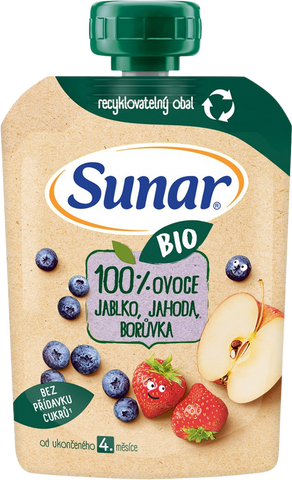 Recenze produktu: Sunar BIO ovocná kapsička jablko, jahoda, borůvka 4m+ 100 g