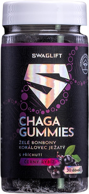 Swaglift Chaga gummies s příchutí černého rybízu 60 ksVše o produktuDoplňující informaceHodnocení produktuChaga (Inonotus obliquus) je houba rostoucí převážně na břízách v chladných oblastech, jako je Sibiř nebo severní Amerika. Je známá svým unikátním vzhledem a tradičním využitím v různých kulturách. SWAGLIFT CHAGA GUMMIES kombinují extrakt z Chagy s vitaminy D3 a E v chutných želé s příchutí černého rybízu. Vitamin D přispívá k normální funkci imunitního systému a vitamin E k ochraně buněk před oxidativním stresem. Vhodné pro vegany.