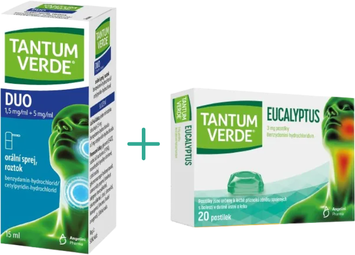 Tantum Verde DUO 1,5 mg/ml + 5 mg/ml orální sprej, roztok 15 ml a Tantum Verde Eucalyptus 3 mg 20 pastilekVše o produktuDoplňující informaceHodnocení produktuTantum Verde DUO 1,5 mg/ml + 5 mg/ml orální sprej, roztok 15 ml