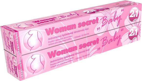 Woman Secret Těhotenský test BABY tyčinkový 2v1 2 ksVše o produktuDoplňující informaceHodnocení produktuSpolehlivé určení těhotenství do týdne po početí