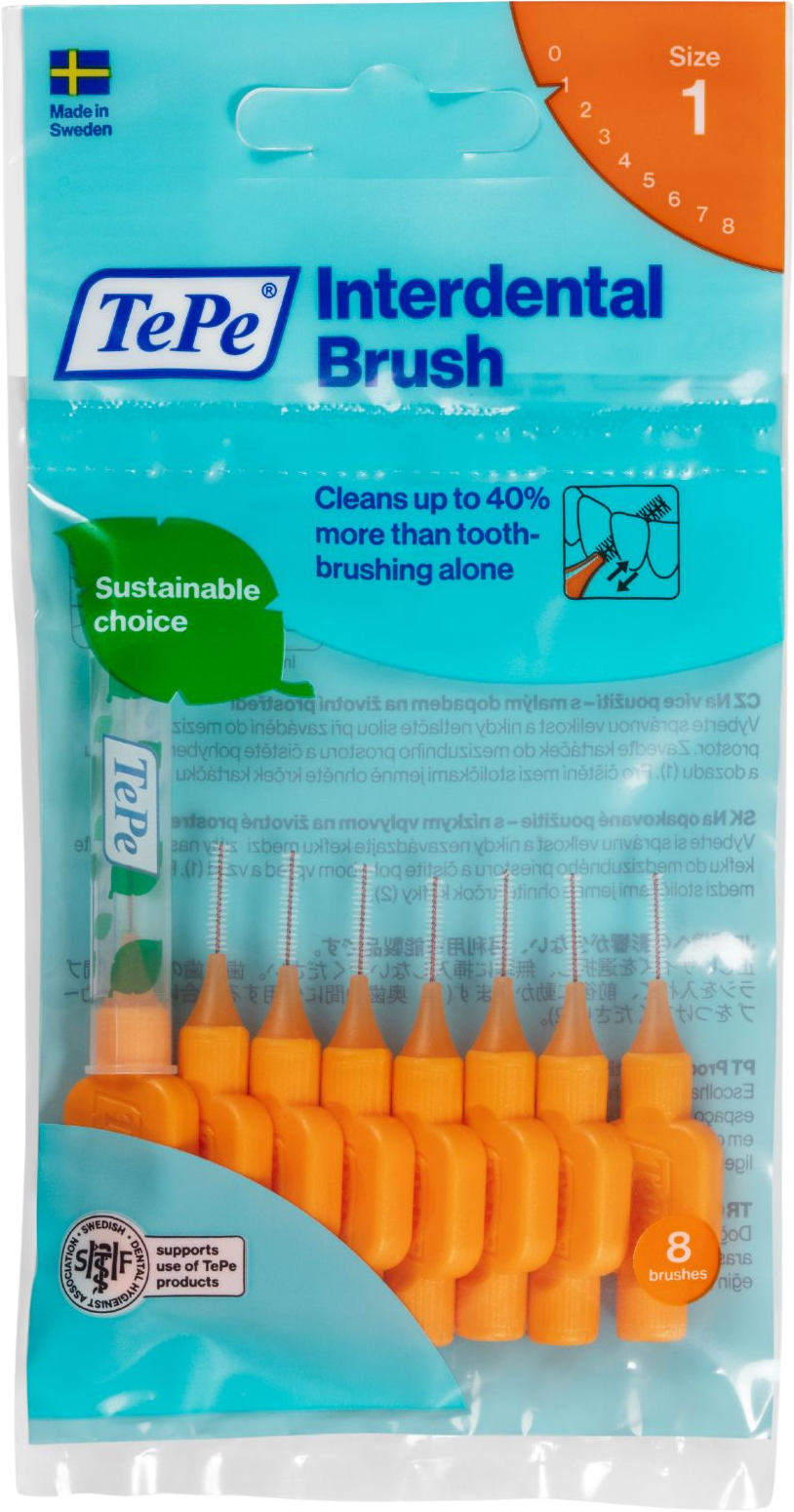 Oranžový TePe je určen pro velikost mezizubních prostor