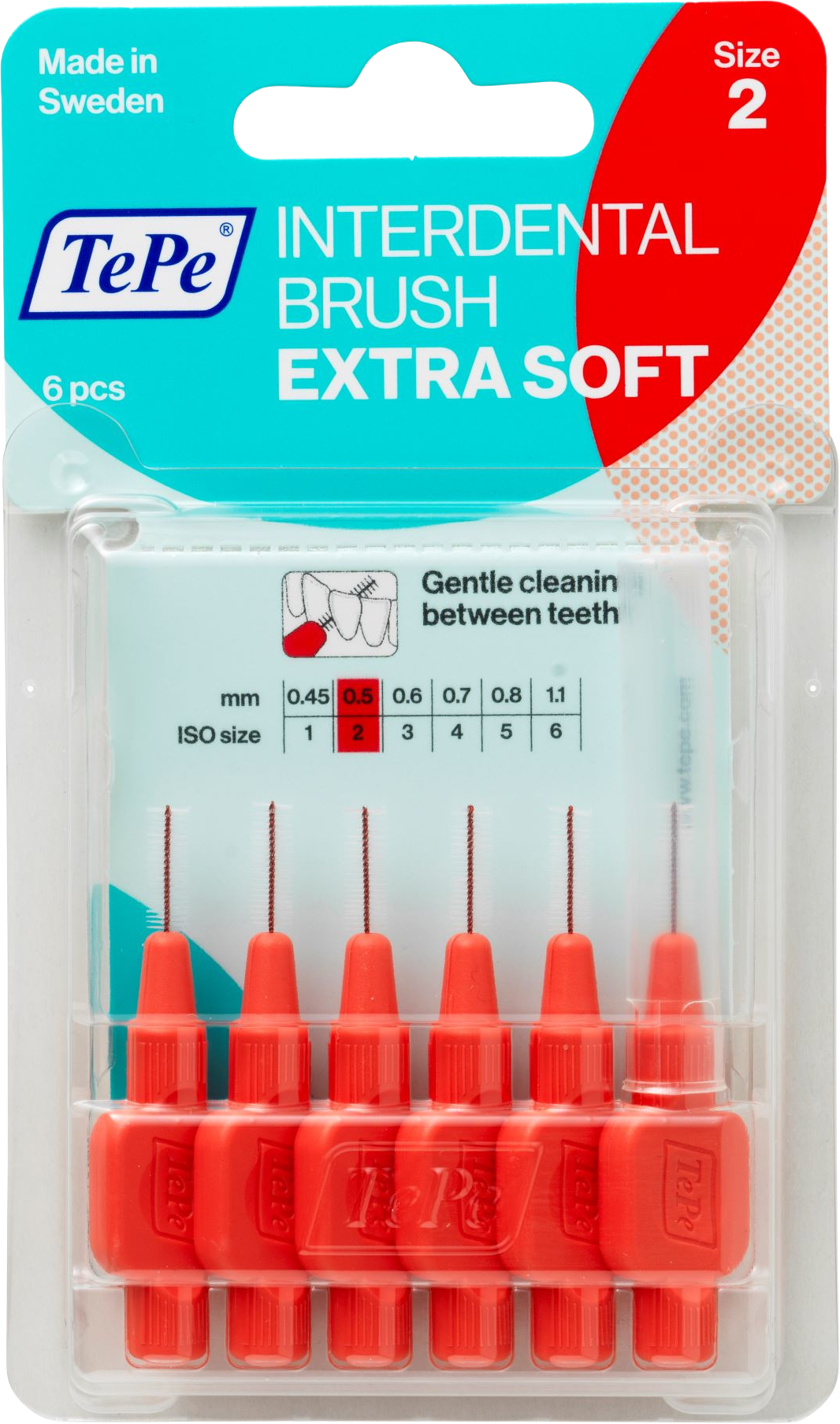 Pastelově červený Tepe je určen pro velikost mezizubních prostor 0,5 mm.